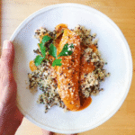 - Remove from oven and serve over a whole-grain like quinoa, brown rice or whole-wheat pasta.