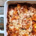 - In a 13 x 9 greased baking dish, add 1/2 marinara sauce. Layer ingredients in the following order: 1/2 roasted sweet potatoes, 1/2 ravioli and 1/2 cheese. For layer two: 1/2 sweet potatoes, 1/2 ravioli, 1/2 sauce and 1/2 cheese.