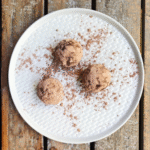 - In a small bowl, whisk 2 T. unsweetened cocoa powder and 1 T. powdered sugar. Pour onto a plate.
