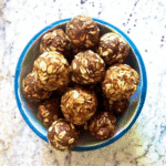 - Anything can go as long as you get a consistency that you can easily form into a ball. It helps to stick them in the fridge for a few minutes before you enjoy.