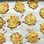- Using a tablespoon measuring spoon, scoop out a heaping tablespoon of the mixture on the baking sheet. Press flat using the back of the spoon. You should be able to make ~ 12-13 crisps.